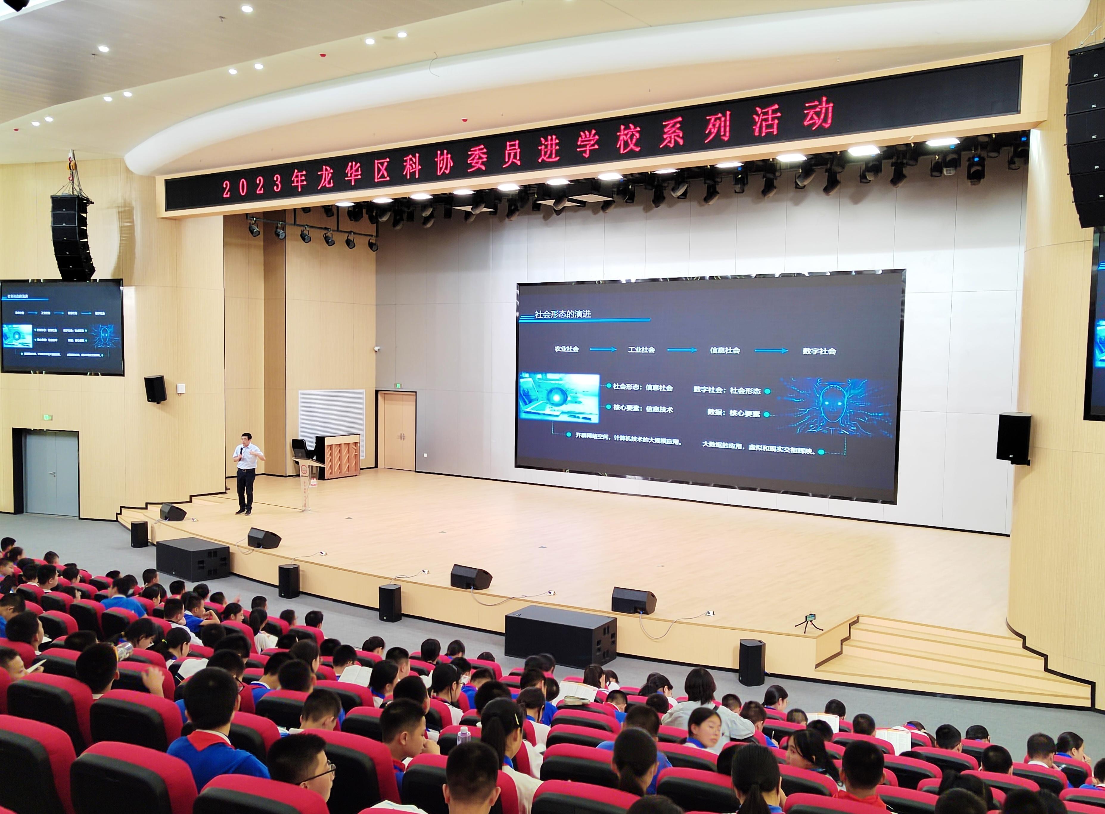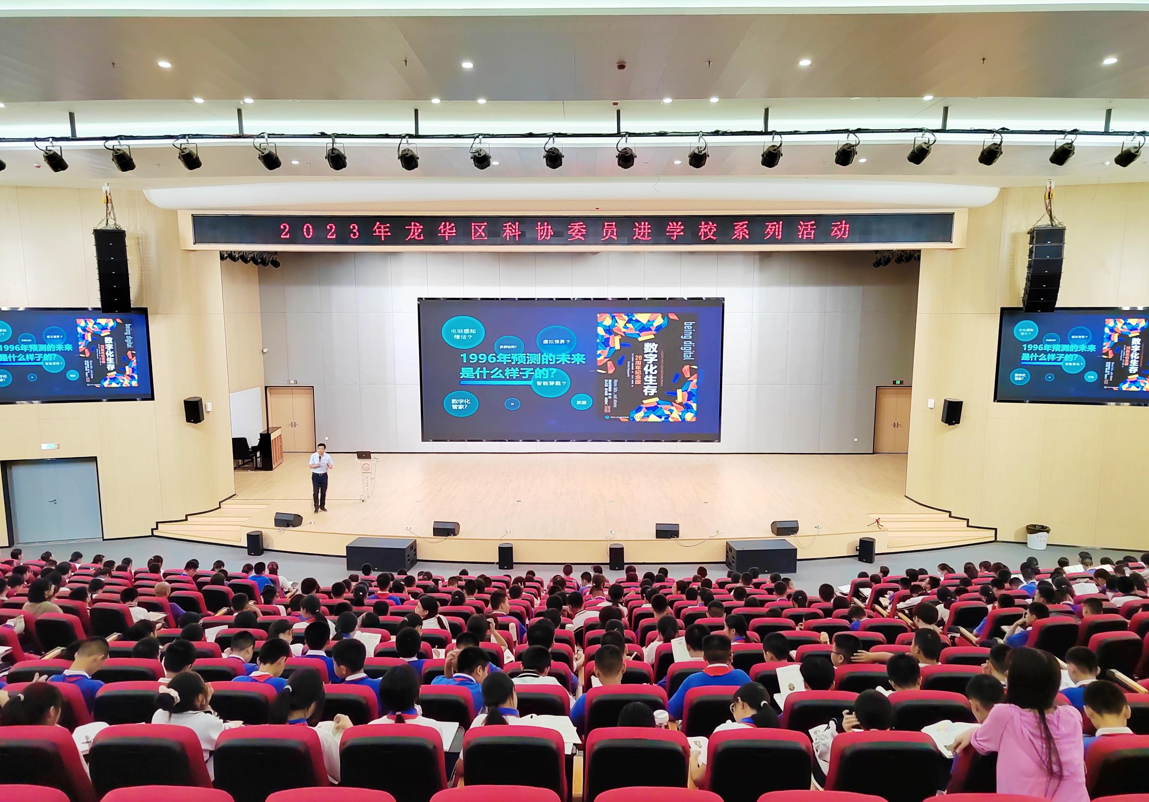 11月9日下午,深圳市觀瀾中學熱烈舉(ju) 辦了2023年龍華區科協委員進學校係列活動主題科普講座。主講嘉賓湯誌偉(wei) 教授以《數字社會(hui) 的“三天”》為(wei) 題,300餘(yu) 名學生參與(yu) 本次活動。