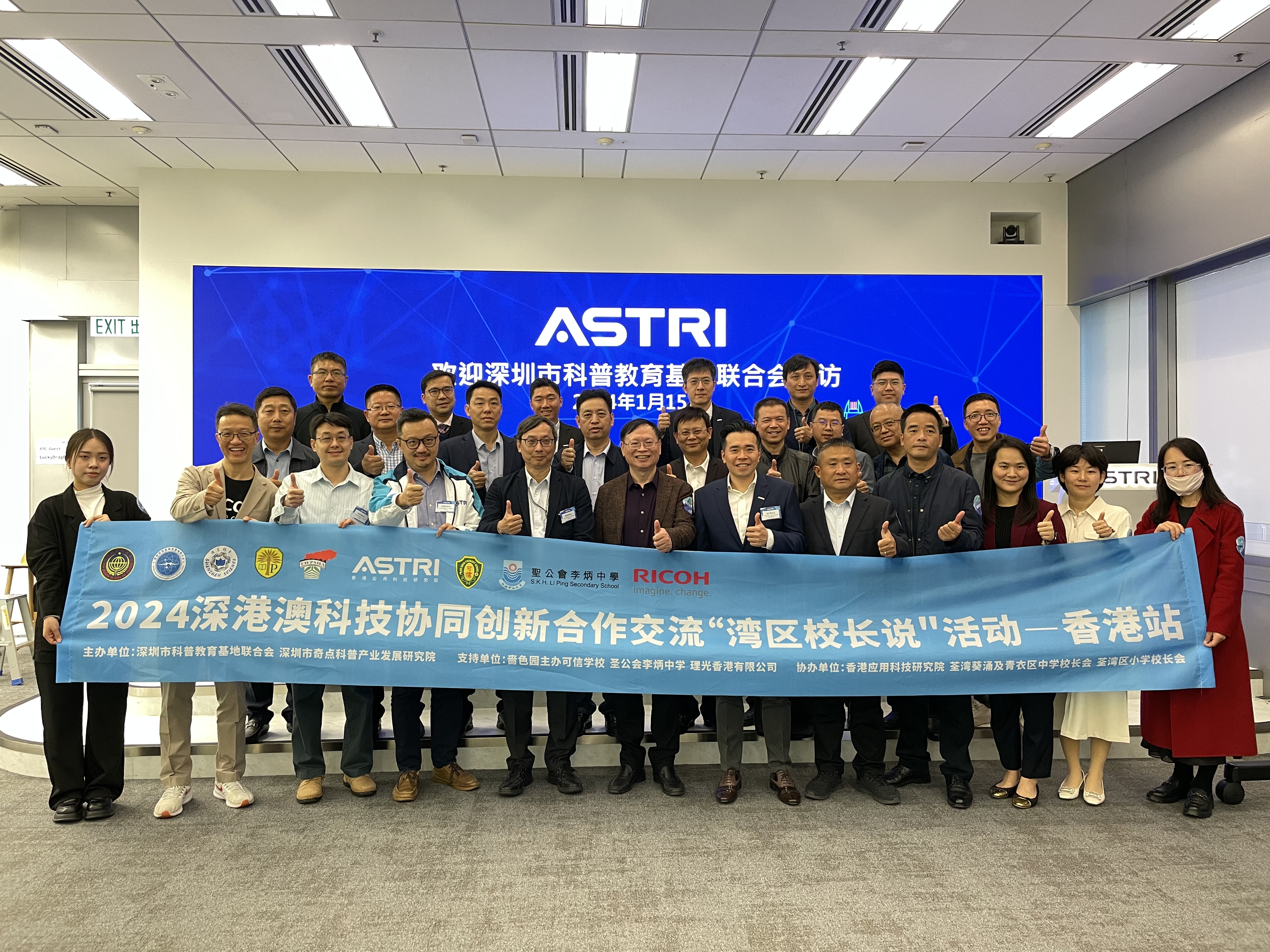 1月15日,2024深港澳科技協同創新合作交流“灣區校長說”活動首次走進香港,深圳校長代表團一行來到嗇色園主辦可信學校、聖公會(hui) 李炳中學和香港應用科技研究院。來自深圳的二十多位中小學校長們(men) 深入探訪香港中小學校及科研機構,了解香港學校的科創教育設備和科創課堂情況,並圍繞“科創教育的現狀與(yu) 未來發展”主題,與(yu) 香港荃灣區的25位中小學校長們(men) 進行了座談交流,互相分享了兩(liang) 地科創教育理念和實踐經驗,雙方一致認為(wei) ,深港兩(liang) 地在教育領域具有很大的互補性,未來可在多個(ge) 領域展開合作,共同推動灣區科創教育的發展。