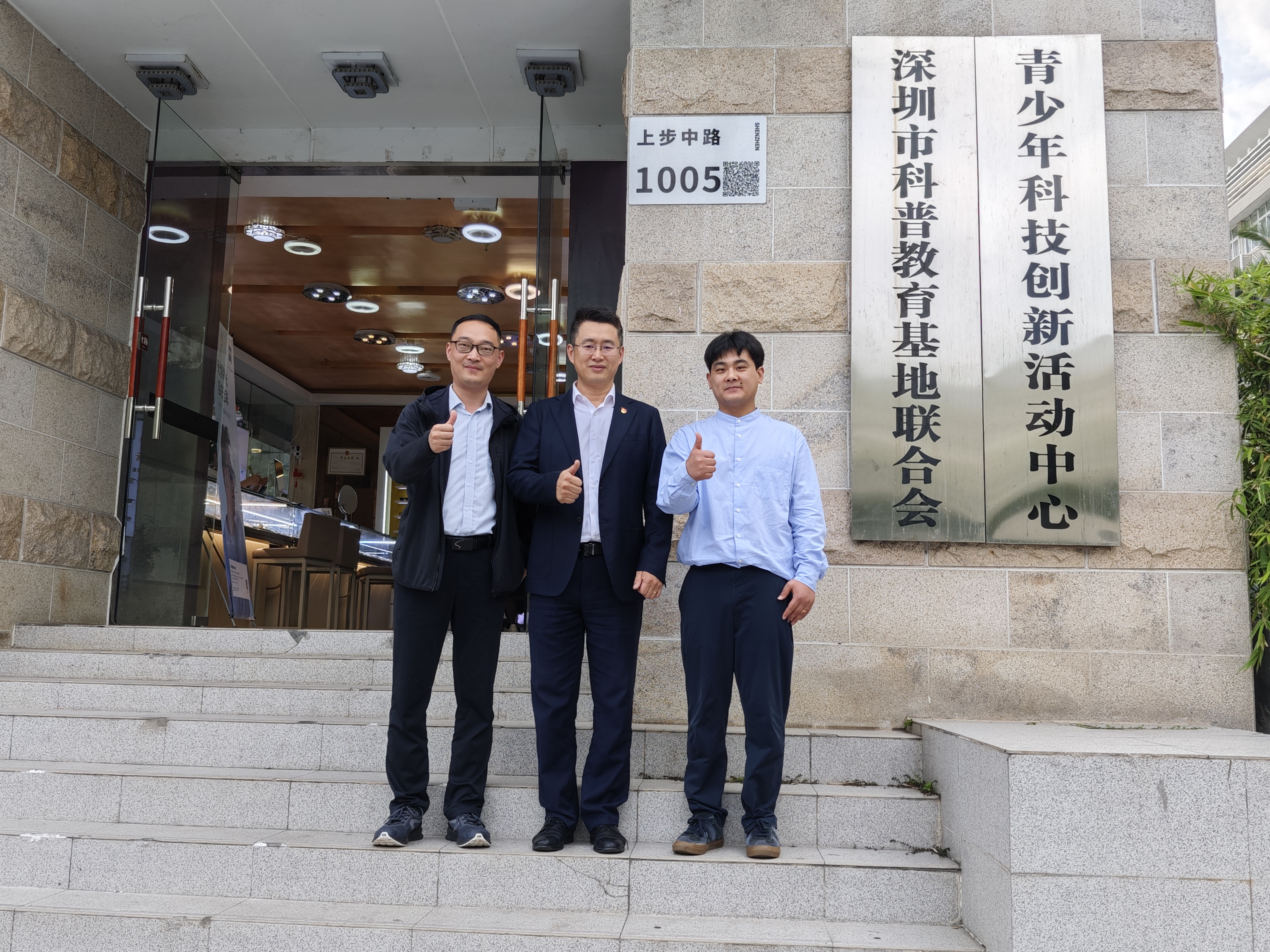2024年3月22日,深圳信息職業(ye) 技術學院中德機器人學院學工辦主任王家棟與(yu) 科技社團陳家國老師參訪深圳市科普教育基地聯合會(hui) 。雙方就中德機器人學院的介紹及深圳科普產(chan) 業(ye) 的發展進行了深入交流,並達成多項合作共識。