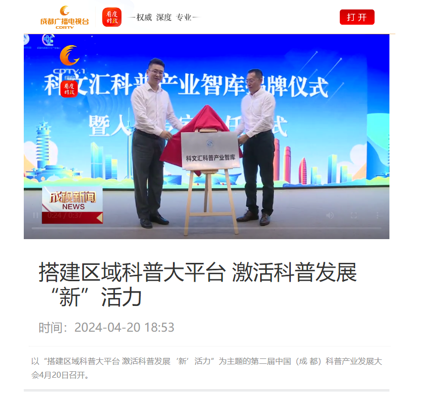 2024年4月20日,第二屆中國(成都)科普產(chan) 業(ye) 發展大會(hui) 暨中國科普聯盟2024年年會(hui) 在成都科技會(hui) 堂隆重召開。此次大會(hui) 匯聚了眾(zhong) 多科普領域的專(zhuan) 家學者和業(ye) 界精英,共同探討科普產(chan) 業(ye) 的發展趨勢和未來方向。