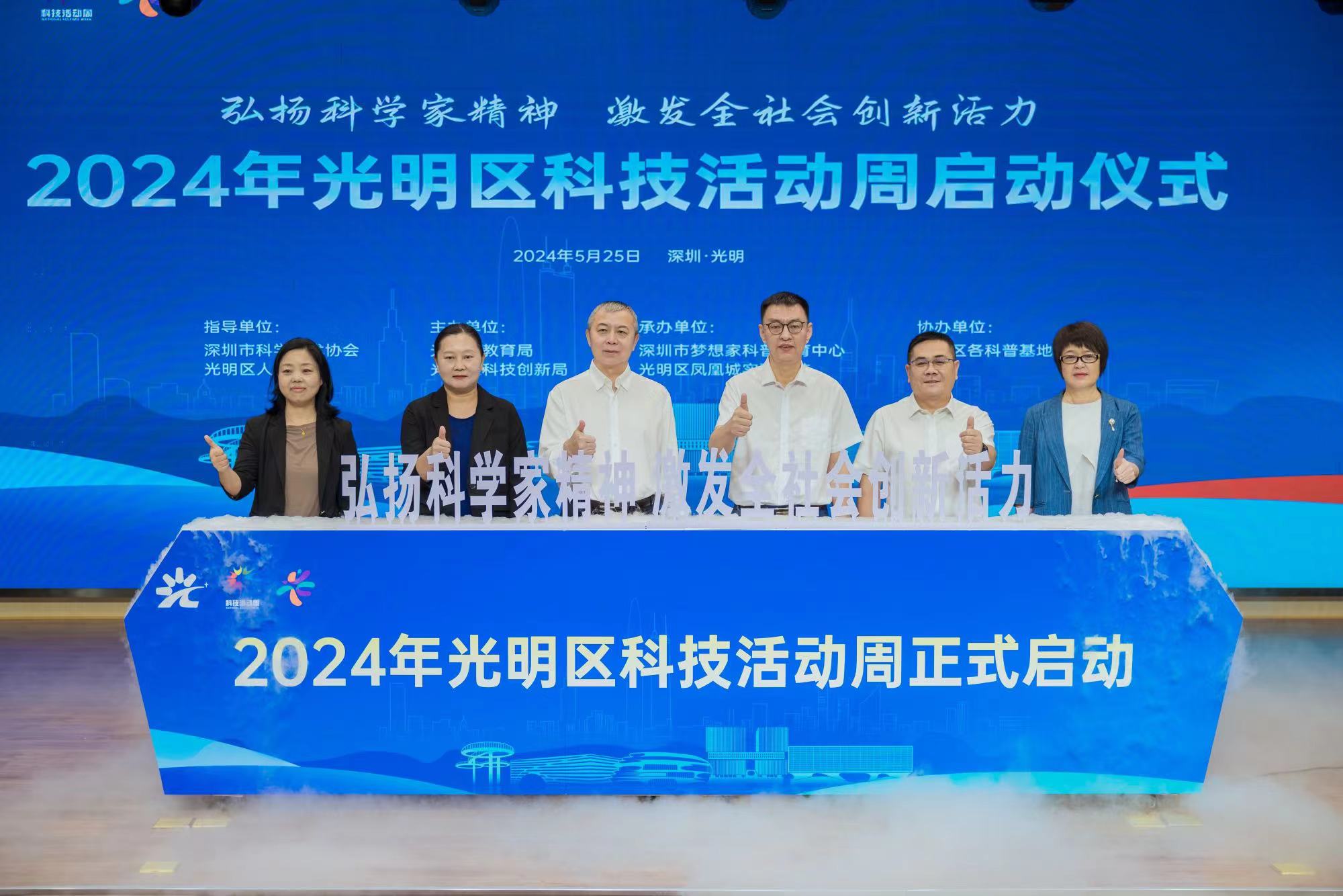 5月25日,由深圳市科學技術協會(hui) 、光明區人民政府指導,光明區科技創新局、光明區教育局聯合主辦的2024年光明區科技活動周啟動儀(yi) 式在光明區鳳凰城實驗學校舉(ju) 行。出席此次活動的有深圳市科學技術協會(hui) 、光明區政協、光明區教育局、光明區科技創新局等部門領導,光明區各科普基地、科研機構、科技企業(ye) 代表以及學校師生約400人。深圳市科學技術協會(hui) 黨(dang) 組成員孫楠,光明區政協副主席席衛忠,分別為(wei) 啟動儀(yi) 式致辭。