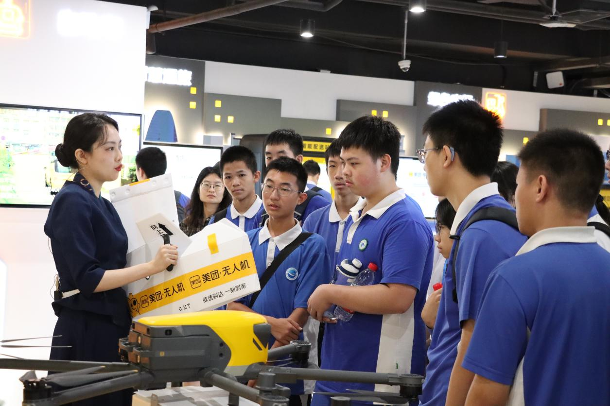 7月22日,師生們(men) 參觀美團科技展覽館,現場同學們(men) 了解到美團深圳龍華全國生活服務消費大數據運營中心最新的智能數據分析情況,了解了人工智能在低空經濟領域的運用。觀賞了眾(zhong) 多智能的低空經濟前沿科技展品,涵蓋智能飛行器、自動配送車等相關(guan) 展品,以及互聯網大數據產(chan) 品如:多人多點實時智能外賣配送調度係統,餐飲娛樂(le) 星空体育官网入口网站圖譜“美團大腦”等內(nei) 容。