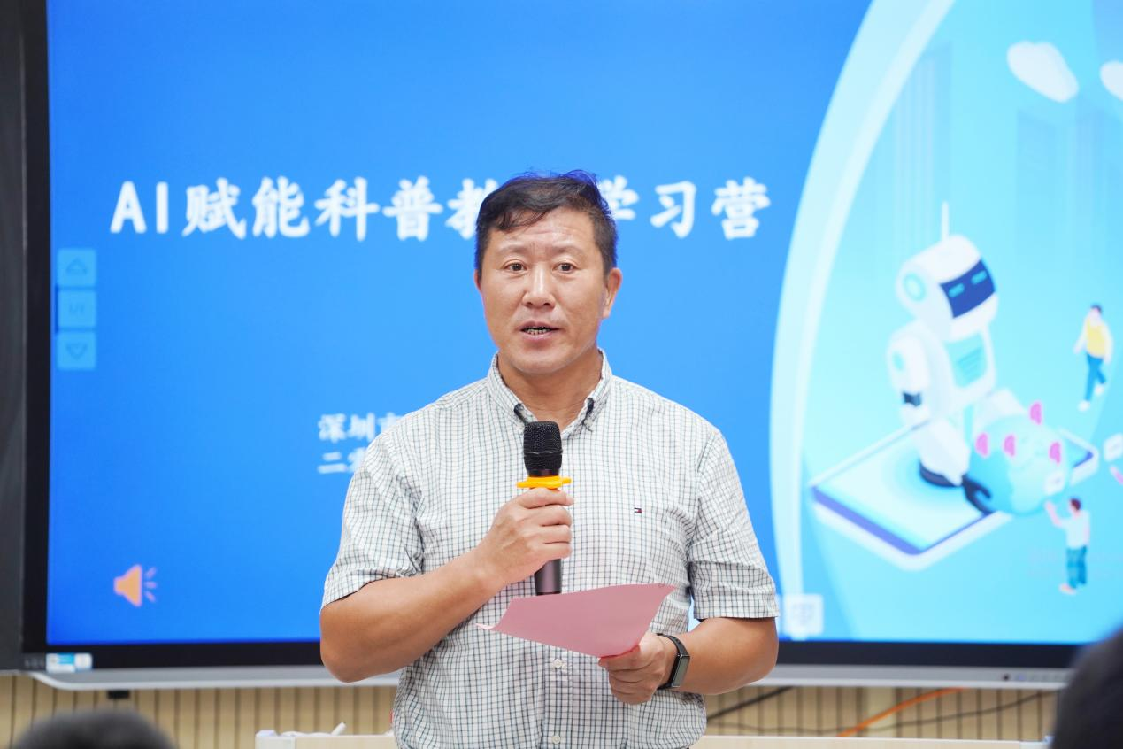 7月19日,活動在深圳市福田中學開營,深圳市福田中學校長王德久先生、香港浸會(hui) 大學王浩博士、銀英航空集團董事長陳宗先生以及深圳市科普教育基地聯合會(hui) 秘書(shu) 長辛世民等嘉賓出席開營儀(yi) 式。王校長鼓勵學生們(men) 通過此次活動,積極探索未知領域,挑戰自我,為(wei) 未來做好準備。