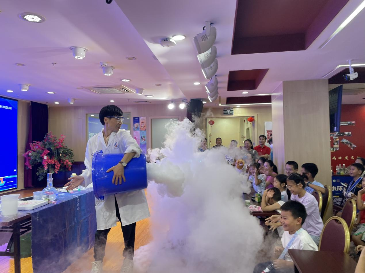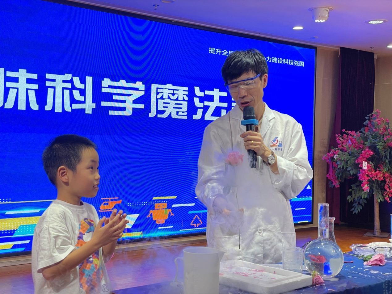 約50組來自東(dong) 湖街道的親(qin) 子家庭,共同參加本次科普集市。活動以一場精彩絕倫(lun) 的科學表演拉開序幕。表演中,科學老師通過極寒挑戰、液氮玫瑰、液氮空氣炮等視覺震撼的實驗演示,讓觀眾(zhong) 近距離感受科學的魅力。表演結束後,觀眾(zhong) 們(men) 紛紛感歎科學之美,並表示對接下來的科普體(ti) 驗環節充滿了期待。