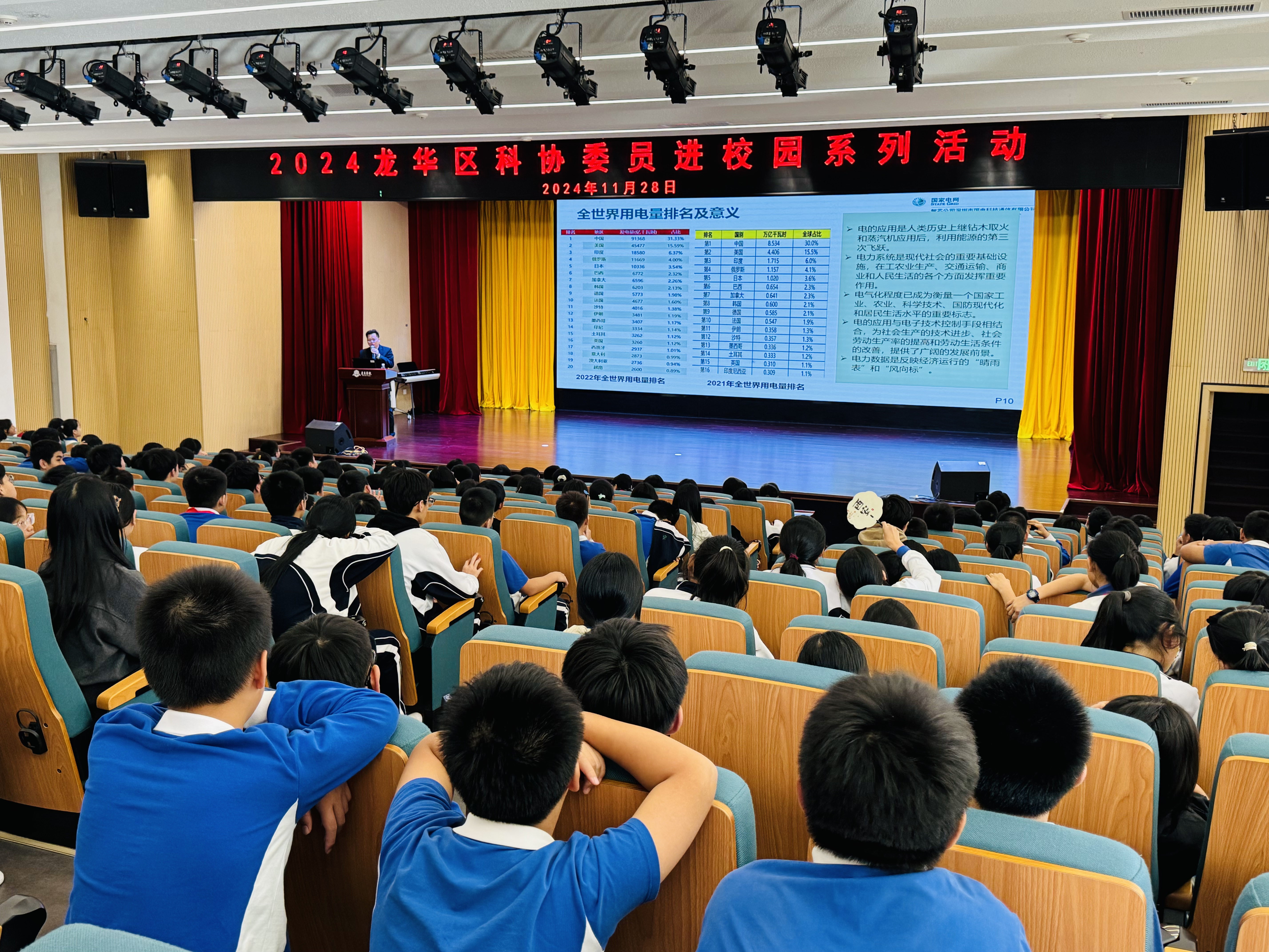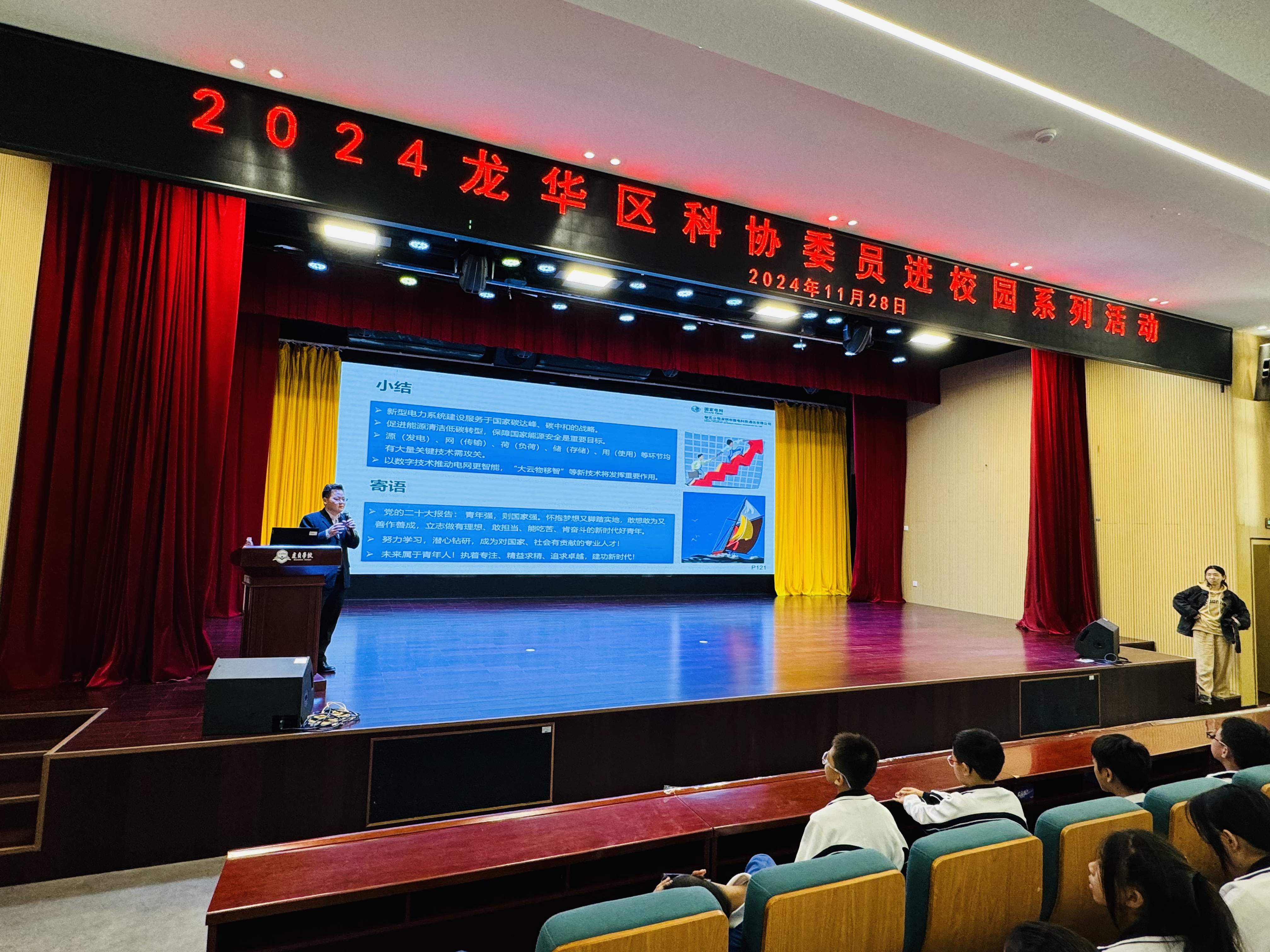 11月28日下午,龍華區人大代表、龍華區科協委員、深圳市國電科技通信有限公司技術專(zhuan) 家、正高級工程師劉慶揚先生,作為(wei) 特邀嘉賓,走進了龍華區虔貞學校,帶來了一場題為(wei) 《新型電力係統》的科普盛宴,吸引了200名學生的熱情參與(yu) 。