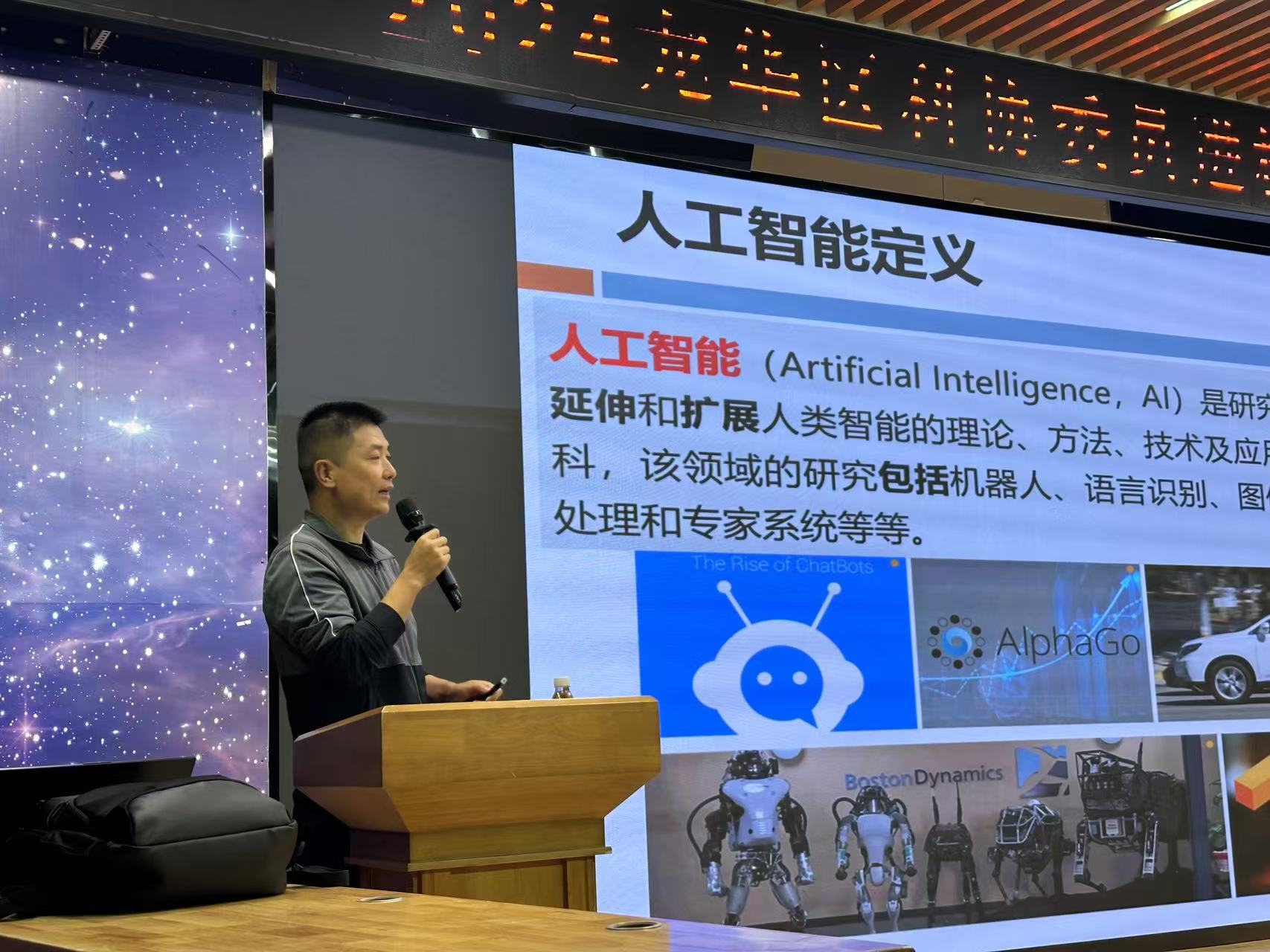 本次講座邀請了電子科技大學(深圳)高等研究院教授、博導、國家高層次青年人賈磊才作為(wei) 活動的主講嘉賓。賈博士首先通過視頻和圖片展示讓大家直觀感受到人工智能大潮來襲的時代。在這個(ge) 快速發展的數字化時代,人工智能已經成為(wei) 一種引人注目的技術,影響和改變著我們(men) 。然後從(cong) 智能的定義(yi) 、人工智能的概念以及未來展望等方麵,為(wei) 大家揭開人工智能的麵紗。