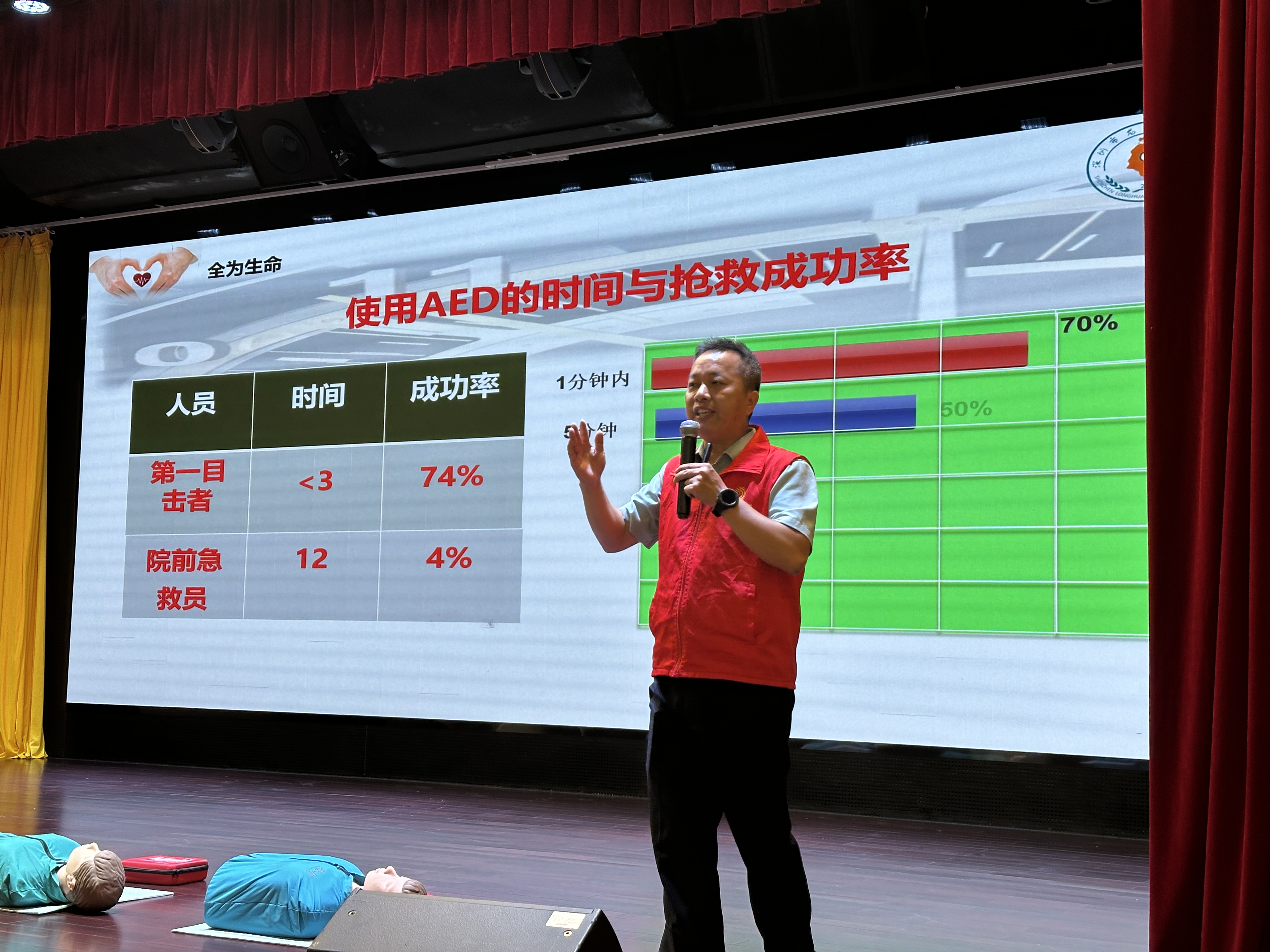 此次活動由龍華區科創局(龍華區科學技術協會(hui) )主辦,主講人陳富明,他在急救領域有著豐(feng) 富的實踐經驗和深厚的理論星空体育官网入口网站。在講座中,他詳細解讀了自動體(ti) 外除顫器(AED)的工作原理,使用方法,以及如何正確應對突發心髒驟停等緊急情況。