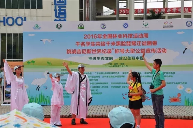 在全國林業(ye) “科技活動周”和“六一國際兒(er) 童節”之際,舉(ju) 辦千名學生共繪“黑臉琵鷺遷徙千米長卷”挑戰世界吉尼斯世界紀錄大型公益宣傳(chuan) 活動,讓眾(zhong) 多未成年人參與(yu) 到這樣一個(ge) 極具教育意義(yi) 並值得一生銘記的公益活動,無疑是一份終身難忘的“六一國際兒(er) 童節”特殊禮物。這既是一次挑戰吉尼斯世界紀錄活動,也是一場大型的科學普及公益活動,它更融入了大陸地區對世界瀕危物種黑臉琵鷺的關(guan) 注和關(guan) 愛,也更展示了一場世界級的保護世界瀕危物種黑臉琵鷺的公益盛會(hui) 。本次活動引起了海內(nei) 外熱愛自然、關(guan) 愛黑臉琵鷺、關(guan) 注生態保護人士的矚目,也是深圳2016年的自豪與(yu) 驕傲。