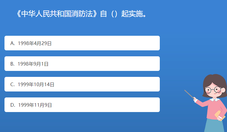 科普星空体育官网入口网站問答:《中華人民共和國消防法》自()起實施。