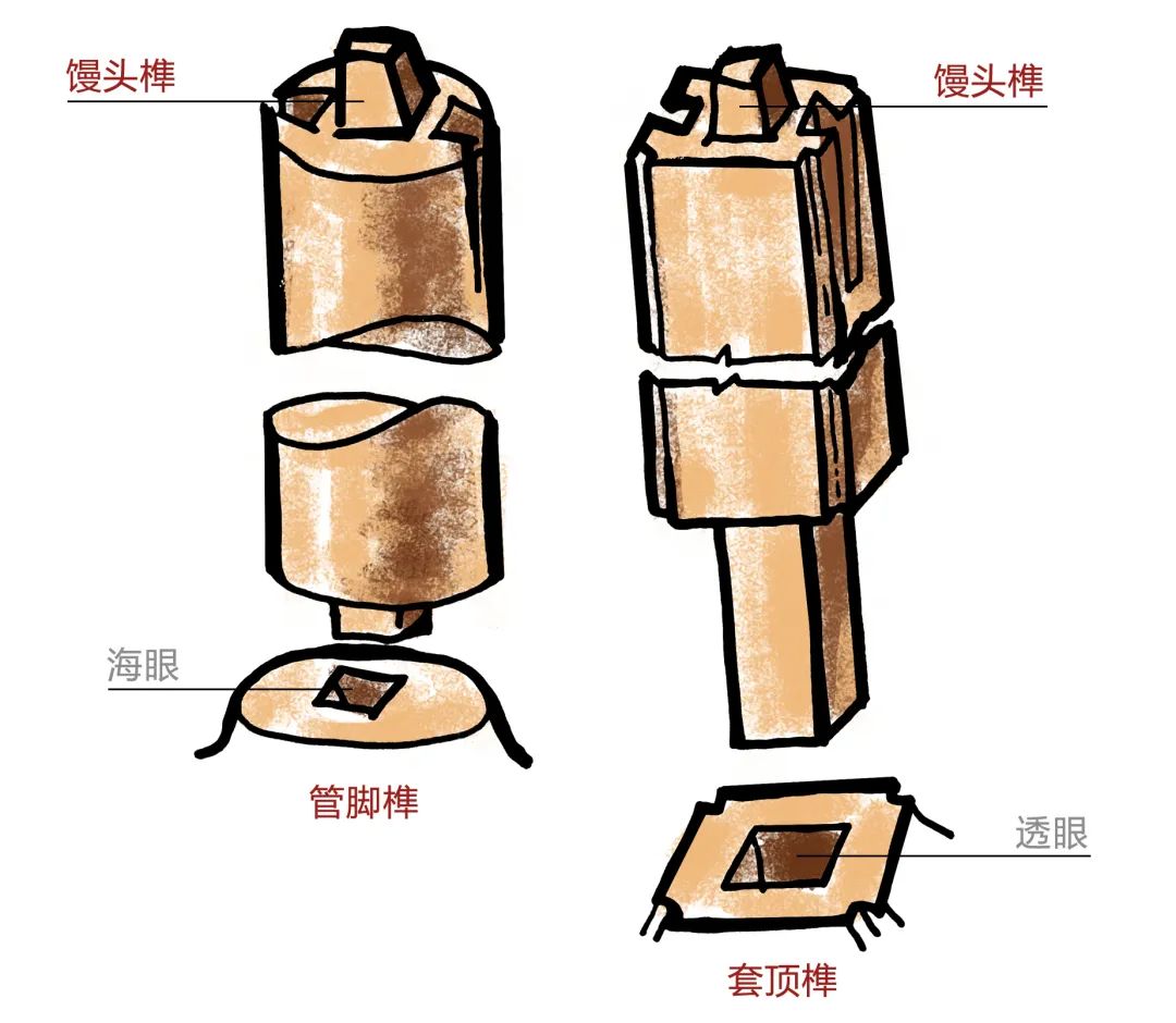 豎直方向的榫卯,稱作管腳榫或套頂榫