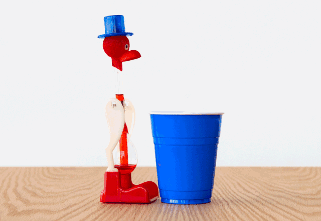 飲水鳥的重心再次下移, 於(yu) 是漸漸直立起來
