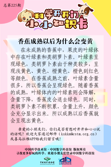 小朋友們,香蕉成熟以後為什麽會由綠變黃呢?