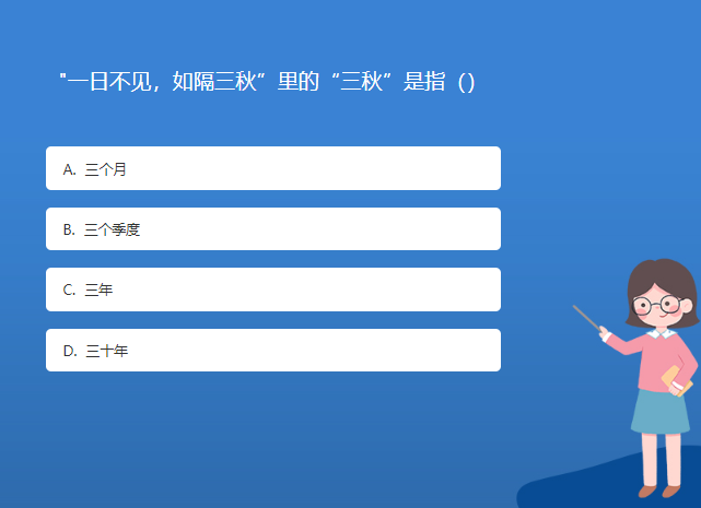 科普星空体育官网入口网站問答:"一日不見,如隔三秋”裏的“三秋”是指()