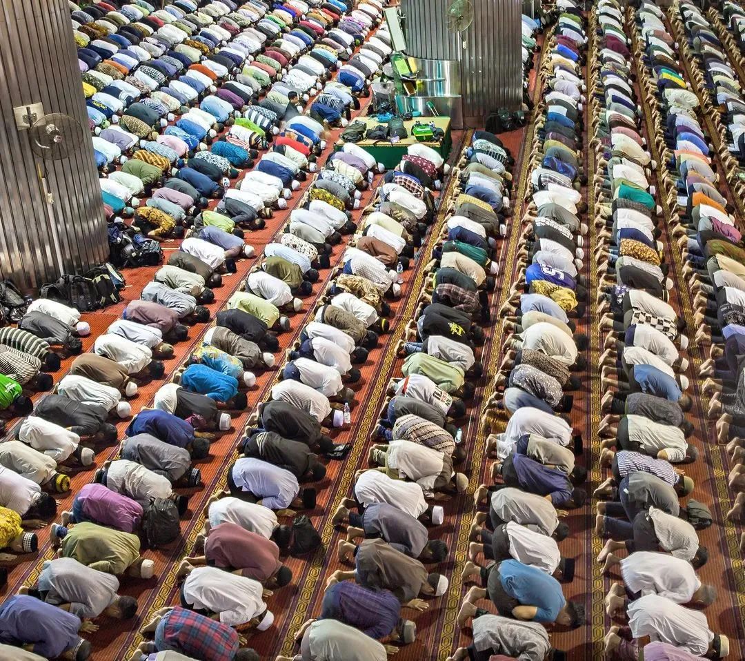 正在伊斯蒂克拉爾清真寺祈禱的穆斯林