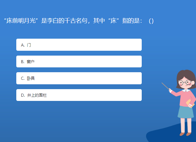 科普星空体育官网入口网站問答:“床前明月光”是李白的千古名句,其中“床”指的是:()