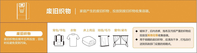注:破襪子、舊內衣褲、拖布及汙損嚴重的織物應投放至其他垃圾收集容器。