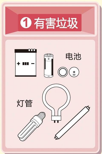 注:破損電池應用透明袋封裝後投入到有害垃圾廢電池收集容器中,而破碎的燈管應用紙張包裹並用膠帶纏好,投入其他垃圾收集容器中。