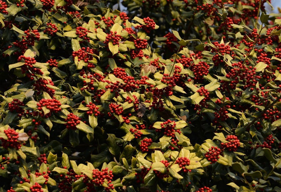 說到這,你是不是想起植物園裏的冬青?不過,冬青的葉片有刺。這帶刺的冬青,實為(wei) 冬青同屬的兄弟,名叫枸骨,又名老虎刺,在中國主要分布於(yu) 長江中下遊各省。邊緣尖刺的葉形加之紅果滿枝的美豔,被許多中國園藝家所喜愛。不僅(jin) 如此,它還被歐洲人相中,遠渡重洋,擔當起冬青的“重擔”,編織起了聖誕花環。果兒(er) 的紅豔,葉兒(er) 的翠綠,掛於(yu) 門前或是置於(yu) 桌麵,無不增添聖誕的氣息。