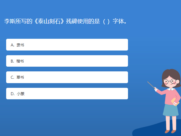 科普星空体育官网入口网站問答:李斯所寫的《泰山刻石》殘碑使用的是( )字體。