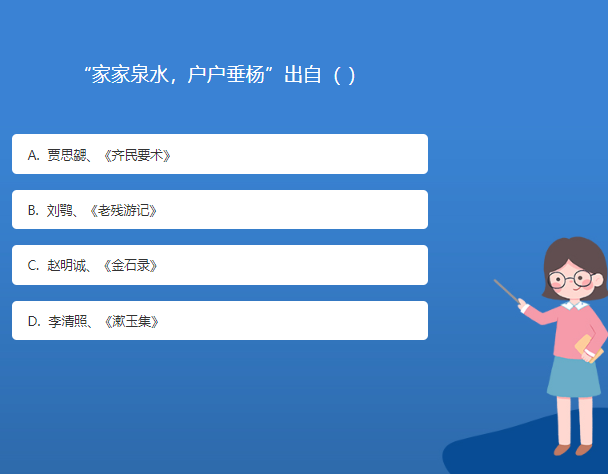 科普星空体育官网入口网站問答:“家家泉水,戶戶垂楊”出自( )