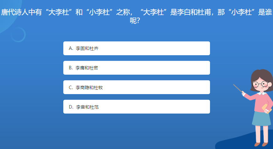 科普星空体育官网入口网站問答:唐代詩人中有“大李杜”和“小李杜”之稱,“大李杜”是李白和杜甫,那“小李杜”是誰呢?