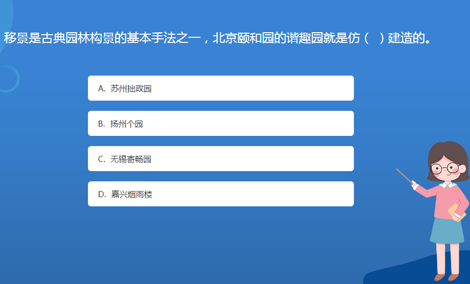 科普星空体育官网入口网站問答:移景是古典園林構景的基本手法之一,北京頤和園的諧趣園就是仿( )建造的。