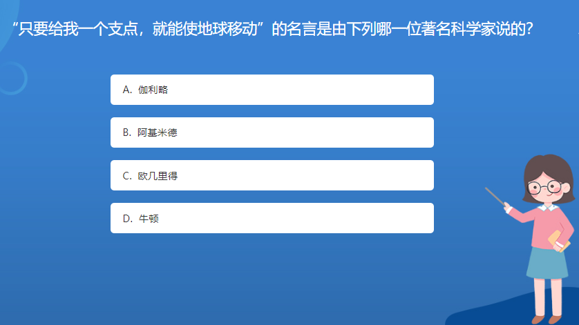 科普星空体育官网入口网站問答:“隻要給我一個支點,就能使地球移動”的名言是由下列哪一位著名科學家說的?