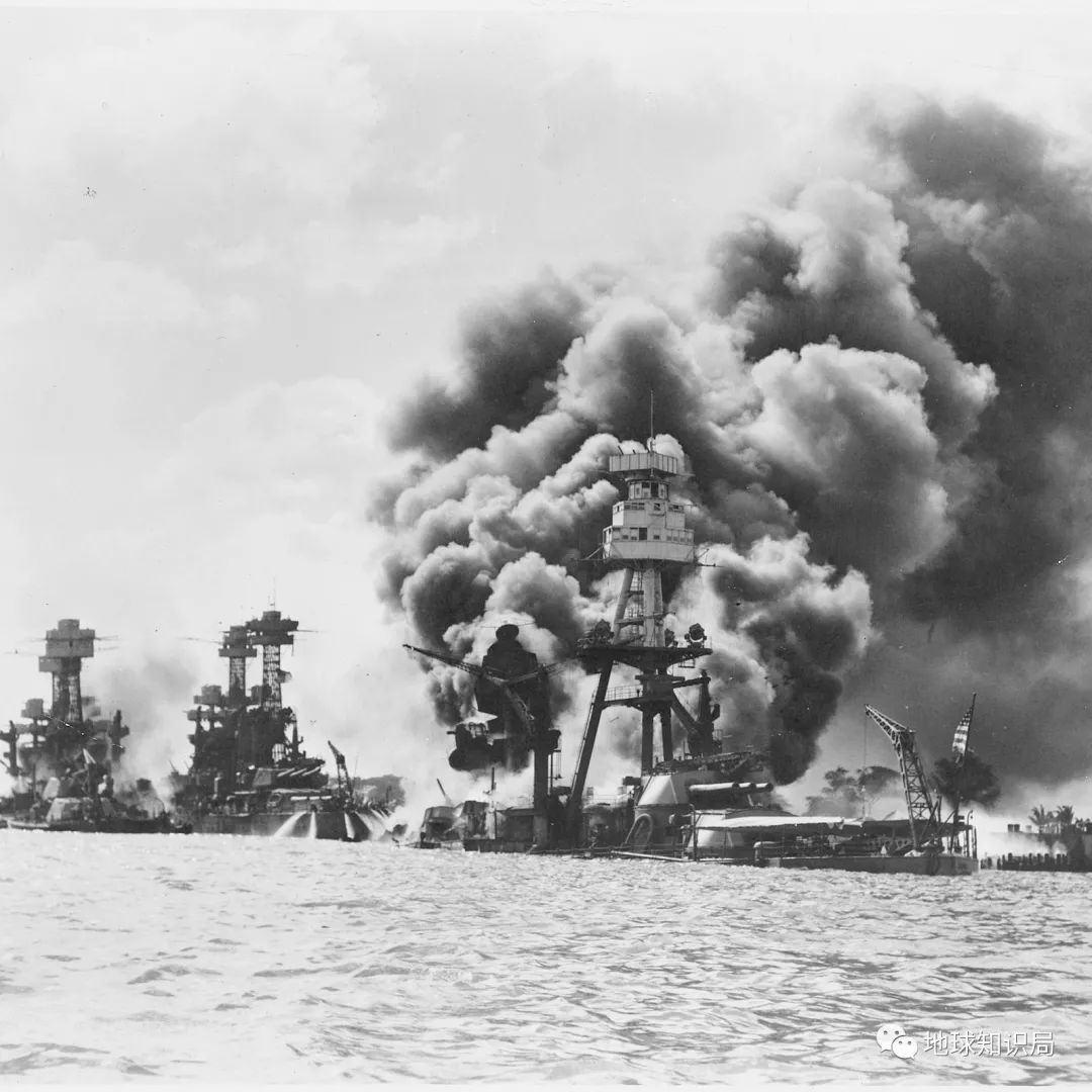 (1941年,珍珠港燃燒的美國戰艦)