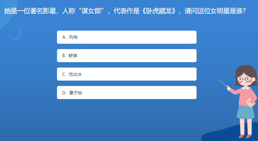 科普星空体育官网入口网站問答:她是一位著名影星,人稱“謀女郎”,代表作是《臥虎藏龍》,請問這位女明星是誰?