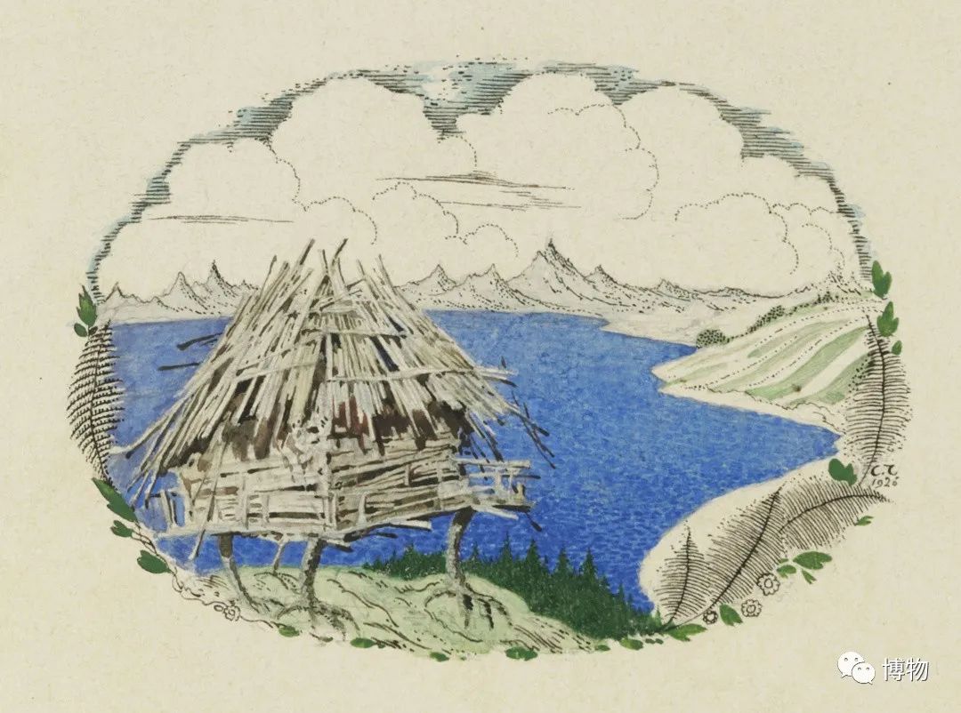 一副俄羅斯畫作中,巴巴雅嘎的小木屋