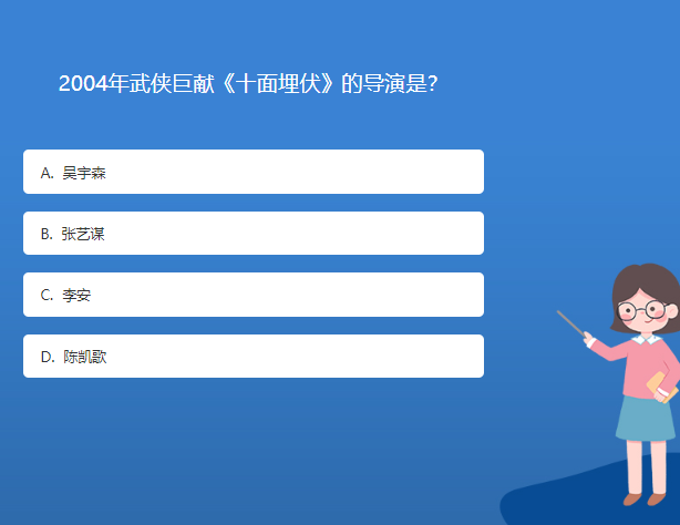 科普星空体育官网入口网站問答:2004年武俠巨獻《十麵埋伏》的導演是?