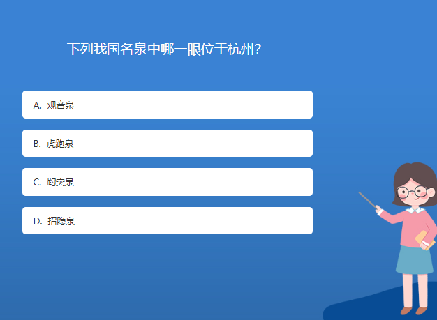 科普星空体育官网入口网站問答:下列我國名泉中哪一眼位於杭州?