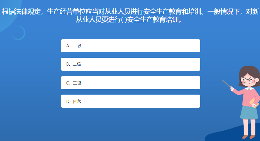 科普星空体育官网入口网站問答:根據法律規定,生產經營單位應當對從業人員進行安全生產教育和培訓。一般情況下,對新從業人員要進行( )安全生產教育培訓。