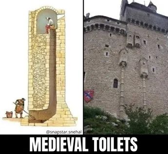 世界第一座城堡可以追溯到1000年前,中世紀城堡的建築時間則一般被劃分在1066年到1485年左右,別說配套的水暖係統、排汙管道,衝(chong) 水馬桶的最初代產(chan) 品還要等上百年才能出現。如何在城堡裏解決(jue) 衛生問題,或許沒有我們(men) 想象的那麽(me) 簡單?但最近網絡中的一張圖,直接為(wei) 我揭開了城堡廁所的神秘麵紗,還真就很簡單,從(cong) 高處往下拉就完事兒(er) 了:
