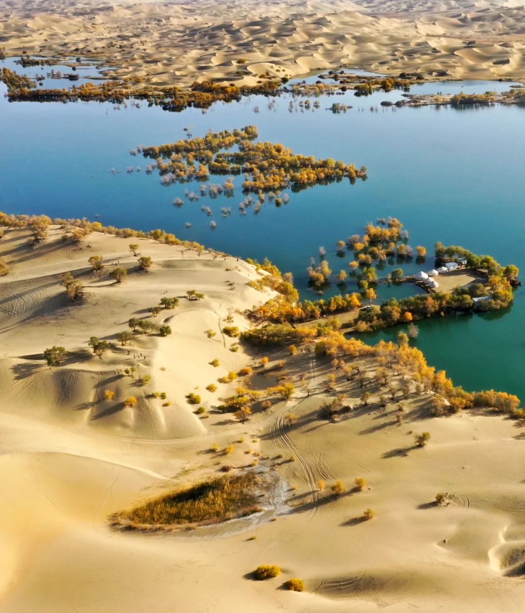 塔裏木河下遊的無名湖泊 | 塔裏木河下遊地區尉犁縣境內(nei) 有很多小湖泊,它們(men) 由河水補給的地下水外滲形成,常生長著胡楊林。攝影師@柴江輝