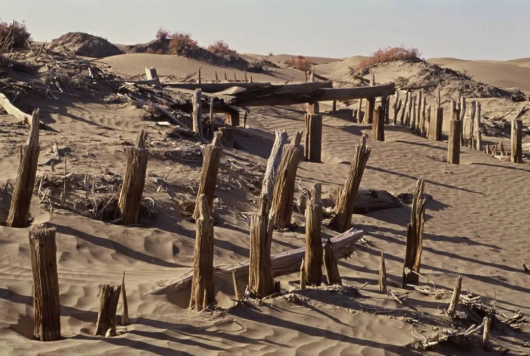 在河流與(yu) 湖泊潤澤不到的地方,暴露在地麵的泥沙被風吹起,堆成流動沙丘,沙漠化進程啟動。塔裏木盆地迎來了第二次背叛,河湖的背叛。