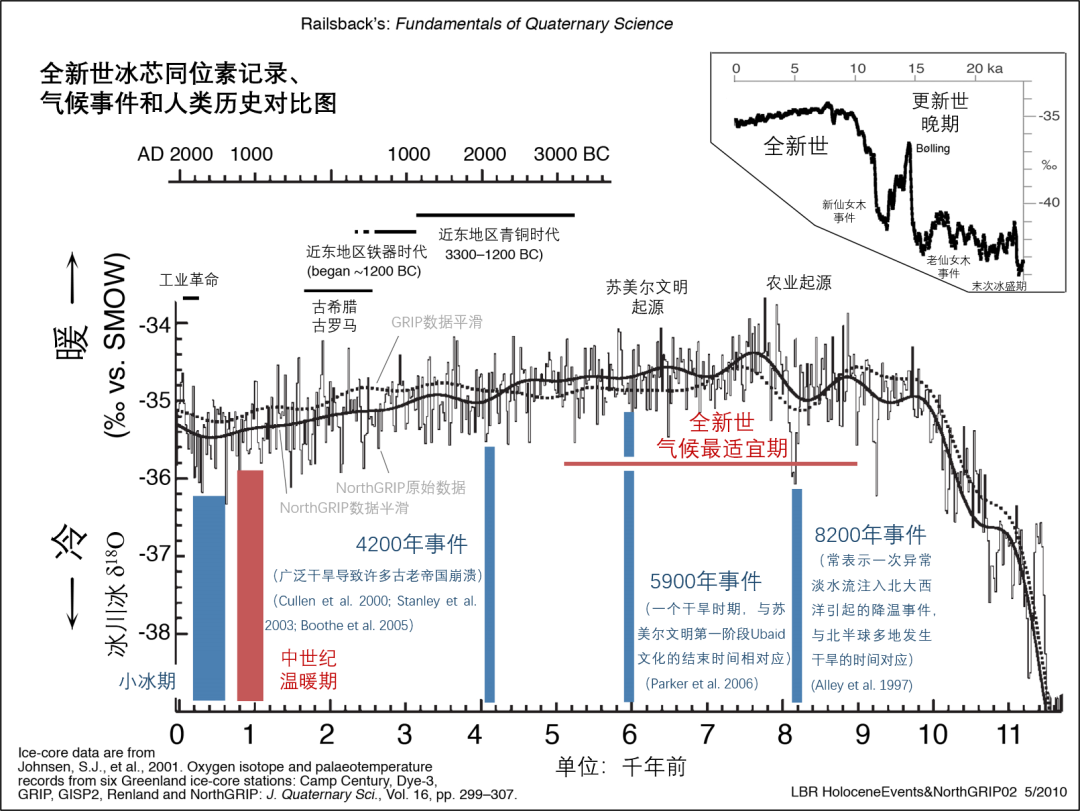 最近1.2萬(wan) 年來的全球氣候變化示意圖 | 七千多年前氣候更加溫暖潮濕,但隨後便一路走低。圖源@railsback.org