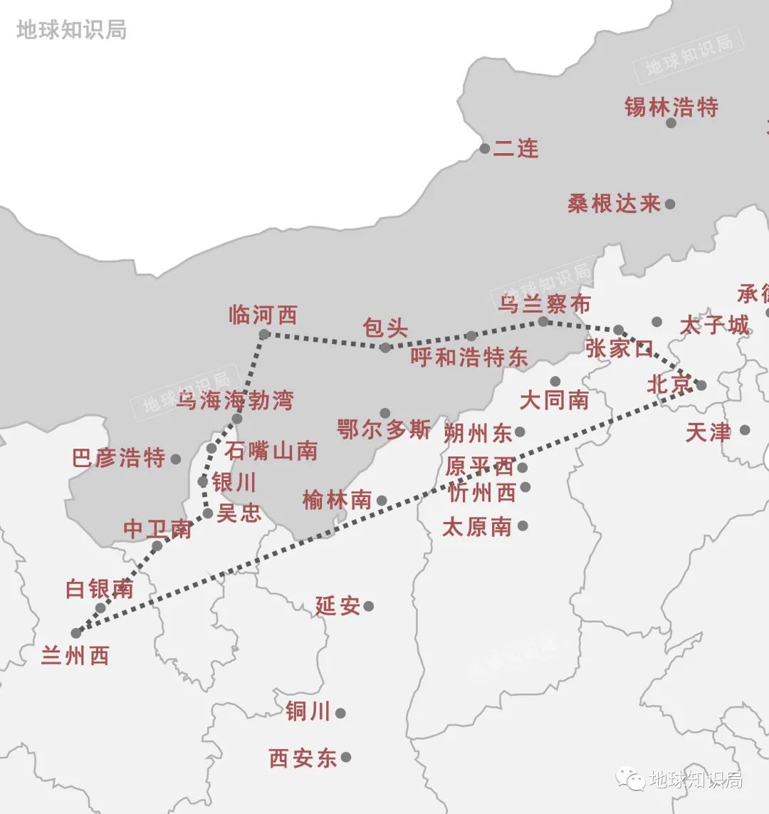 值得一提的是京蘭(lan) 通道。如果北京天安門與(yu) 蘭(lan) 州中山橋之間取直,該線路幾乎不會(hui) 途經內(nei) 蒙古。但從(cong) 內(nei) 蒙古兜一個(ge) 大圈子沿用傳(chuan) 統線路,卻確實有高鐵運行價(jia) 值上的考量。單純直線連接下缺乏有規模的城市及與(yu) 部分高鐵線路重合,而取彎則能將內(nei) 蒙古和寧夏兩(liang) 個(ge) 自治區的沿途眾(zhong) 多城市納入全國高鐵網。