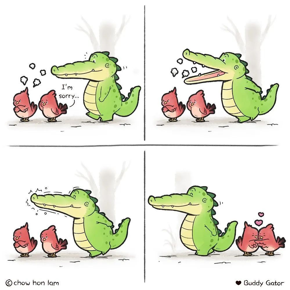 沒想到,我最近的不開心都被一隻短吻鱷治愈了——這隻名為(wei) Buddy Gator的短吻鱷,是馬來西亞(ya) 插畫師Chow Hon Lam短篇漫畫中的主角,最近紅遍了全球。