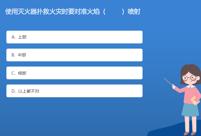 科普基地星空体育官网入口网站問答:使用滅火器撲救火災時要對準火焰( )噴射