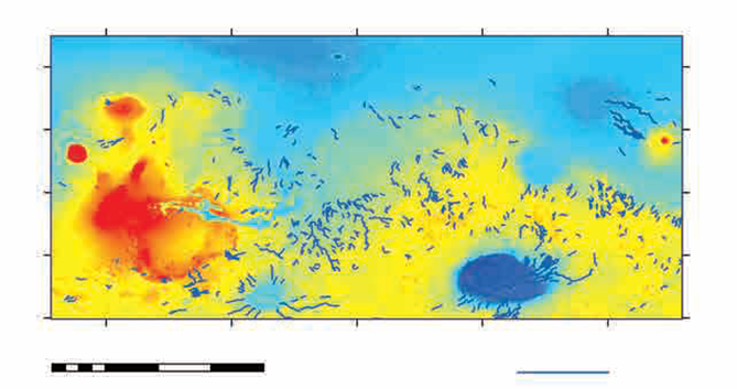 火星表麵較大的網狀河穀分布圖