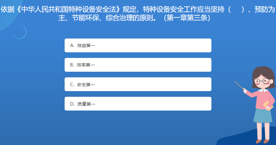 科普基地星空体育官网入口网站問答:依據《中華人民共和國特種設備安全法》規定,特種設備安全工作應當堅持( )、預防為主、節能環保、綜合治理的原則。(第一章第三條)