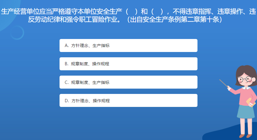 科普基地星空体育官网入口网站問答:生產經營單位應當嚴格遵守本單位安全生產( )和( ),不得違章指揮、違章操作、違反勞動紀律和強令職工冒險作業。(出自安全生產條例第二章第十條)