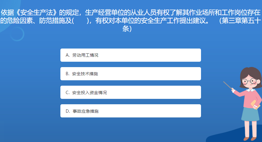 科普基地星空体育官网入口网站問答:依據《安全生產法》的規定,生產經營單位的從業人員有權了解其作業場所和工作崗位存在的危險因素、防範措施及( ),有權對本單位的安全生產工作提出建議。 (第三章第五十條)