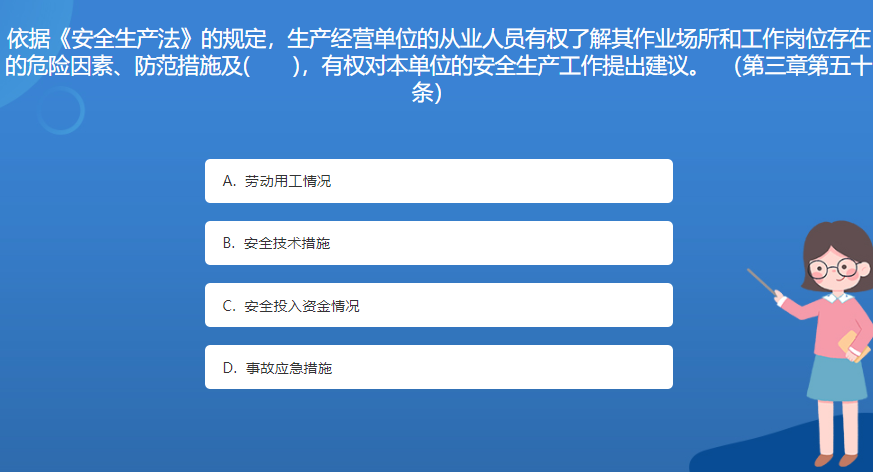 科普基地星空体育官网入口网站問答:依據《安全生產法》的規定,生產經營單位的從業人員有權了解其作業場所和工作崗位存在的危險因素、防範措施及( ),有權對本單位的安全生產工作提出建議。 (第三章第五十條)