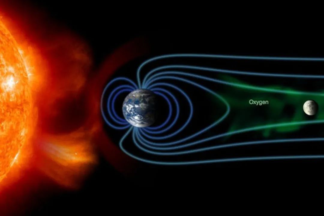 那麽(me) ,月球高緯度地區的氧化條件是如何形成的?地球在其中扮演了什麽(me) 角色?首先說一下氧元素的來源問題,研究者認為(wei) 生成赤鐵礦所需的氧來自於(yu) 地球的高層大氣。與(yu) 地麵的不同,那裏的氧原子處以高度電離狀態,在地球磁場的作用下,這些帶電粒子能傳(chuan) 播到遙遠的行星際空間。地磁場就像一個(ge) 巨大的“防護罩”,使地麵的生物免受太陽風的威脅。太陽風與(yu) 地磁場的相互作用,使得麵向太陽一麵的磁場被嚴(yan) 重壓縮,而背對太陽一側(ce) 的地磁場則向反方向一路延伸,猶如一條長長的尾巴,因而稱為(wei) “磁尾”,長度至少在數百個(ge) 地球半徑以上。地球磁尾具有了類似“運輸通道”的作用,地球高層大氣中的電離粒子,能夠沿著磁尾中稀疏的磁感線被輸送到遙遠的空間,這些來自地球的等離子體(ti) 帶電粒子流被稱為(wei) “地球風(Earth wind)”。