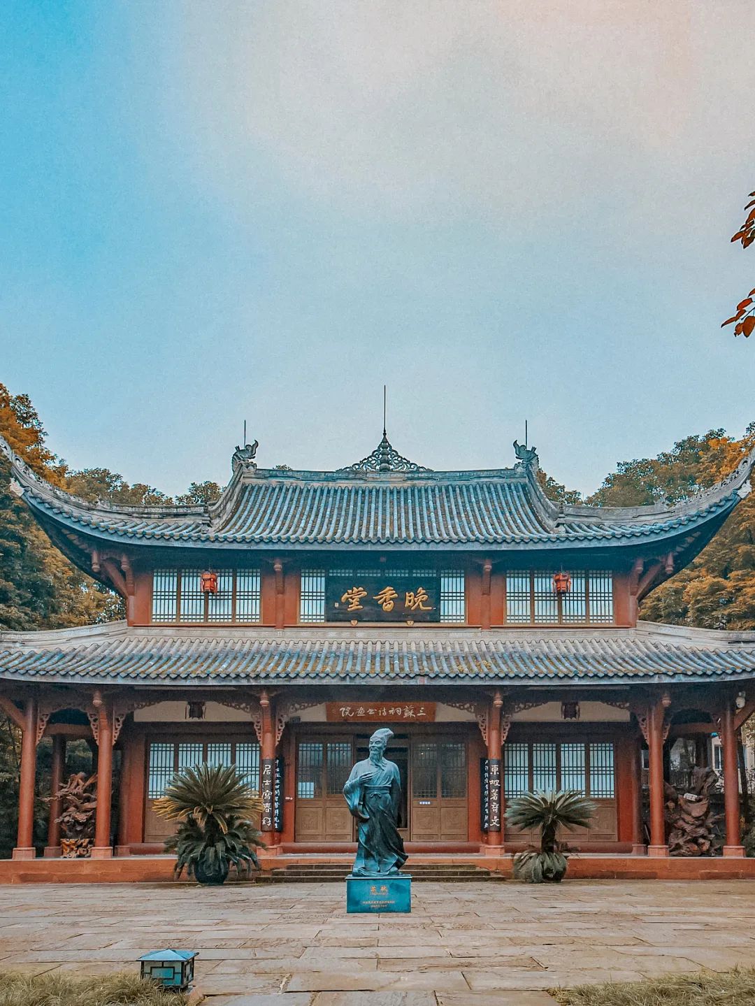 ▲ 三蘇祠晚香堂。攝影/視覺中國在眉山,處處可見與(yu) 蘇東(dong) 坡相關(guan) 的事物:眉山的政治、經濟、文化中心區域,被命名為(wei) “東(dong) 坡區”;東(dong) 坡區的三蘇祠裏,蘇東(dong) 坡的雕像怡然自得;首屆“東(dong) 坡國際文化節”,於(yu) 2007年在眉山舉(ju) 辦;甚至連眉山的城市標誌,都是蘇東(dong) 坡頭像與(yu) 瓦當的組合……