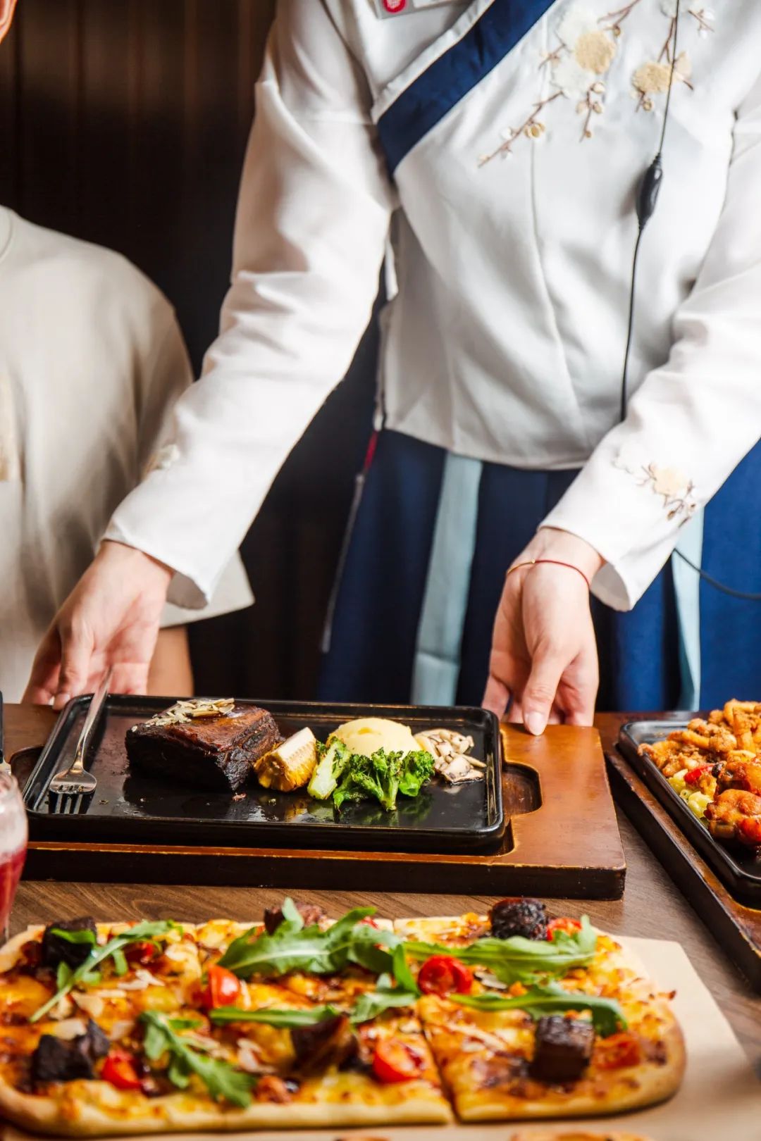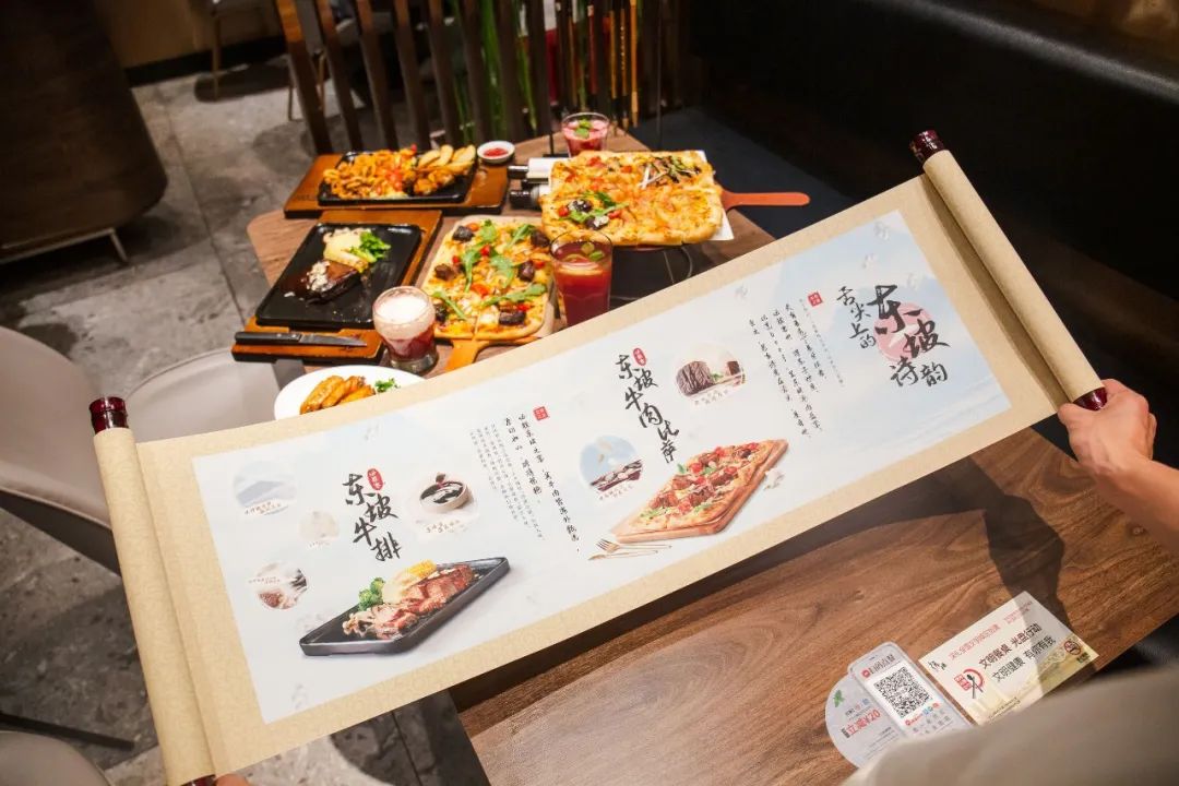 為(wei) 更好地詩意呈現“美食如畫”,必勝客別出心裁,從(cong) 膳、畫、宴三方麵著手,推出“西餐廳的國風宴”,從(cong) 店員服裝到店麵裝飾,彌漫著濃濃的國風氣質,現場除有古風樂(le) 隊演奏之外,背誦《赤壁賦》還可以送比薩……