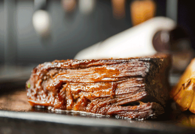 由於(yu) 醬汁在傳(chuan) 統東(dong) 坡醬汁的基礎上,加入了白砂糖與(yu) 茉莉花茶,為(wei) 牛肉提鮮的同時,增加了肉香,也多了一種如詩般的清雅風味。再撒上一層扁桃仁片,增加酥脆口感的同時,錦上添花。