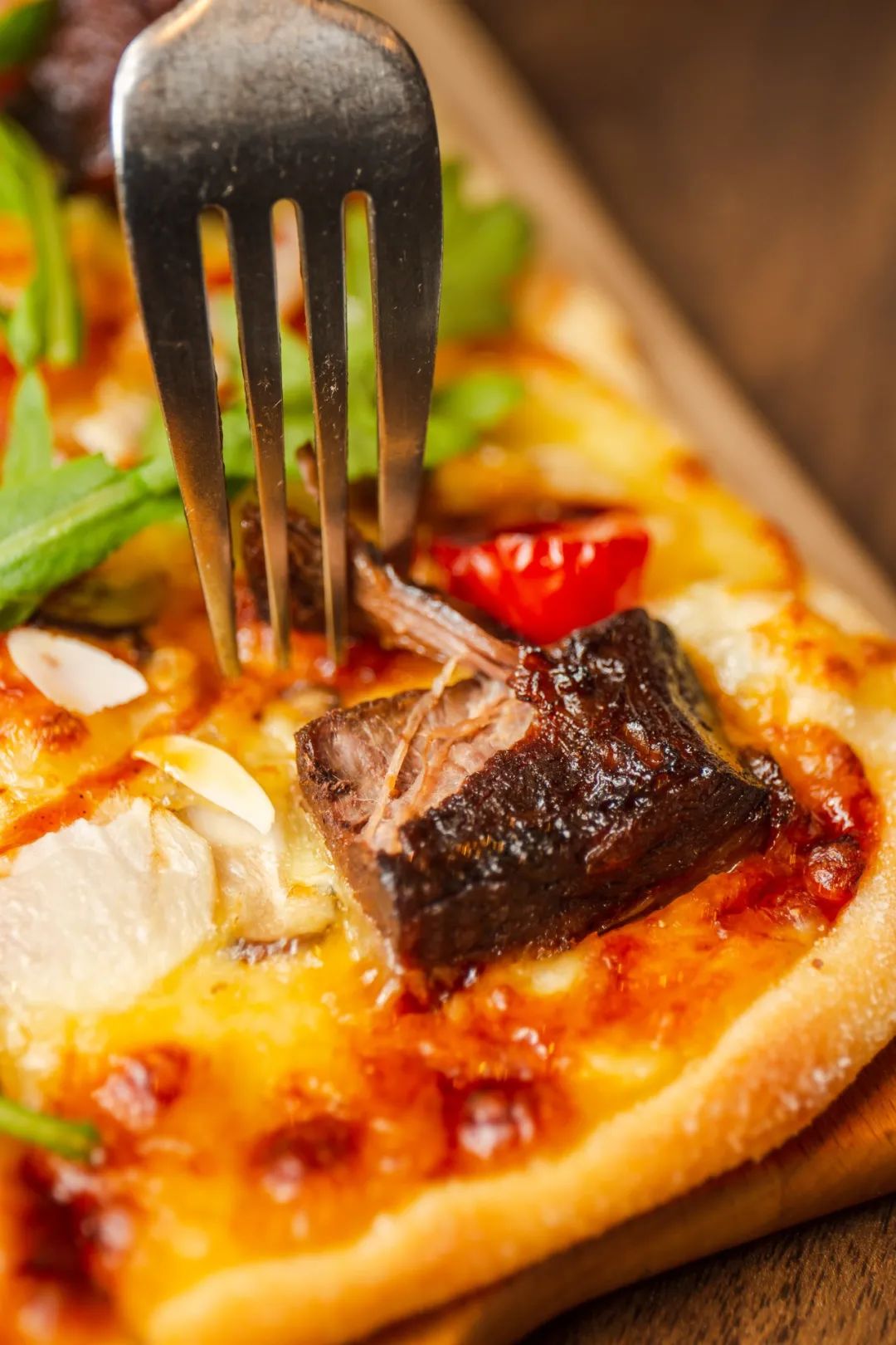 ▲ 扁桃仁片為(wei) 牛肉比薩錦上添花。比薩入口,牛肉大塊厚實,酥爛入味,搭配芝士,柔糯不膩,口感豐(feng) 富。